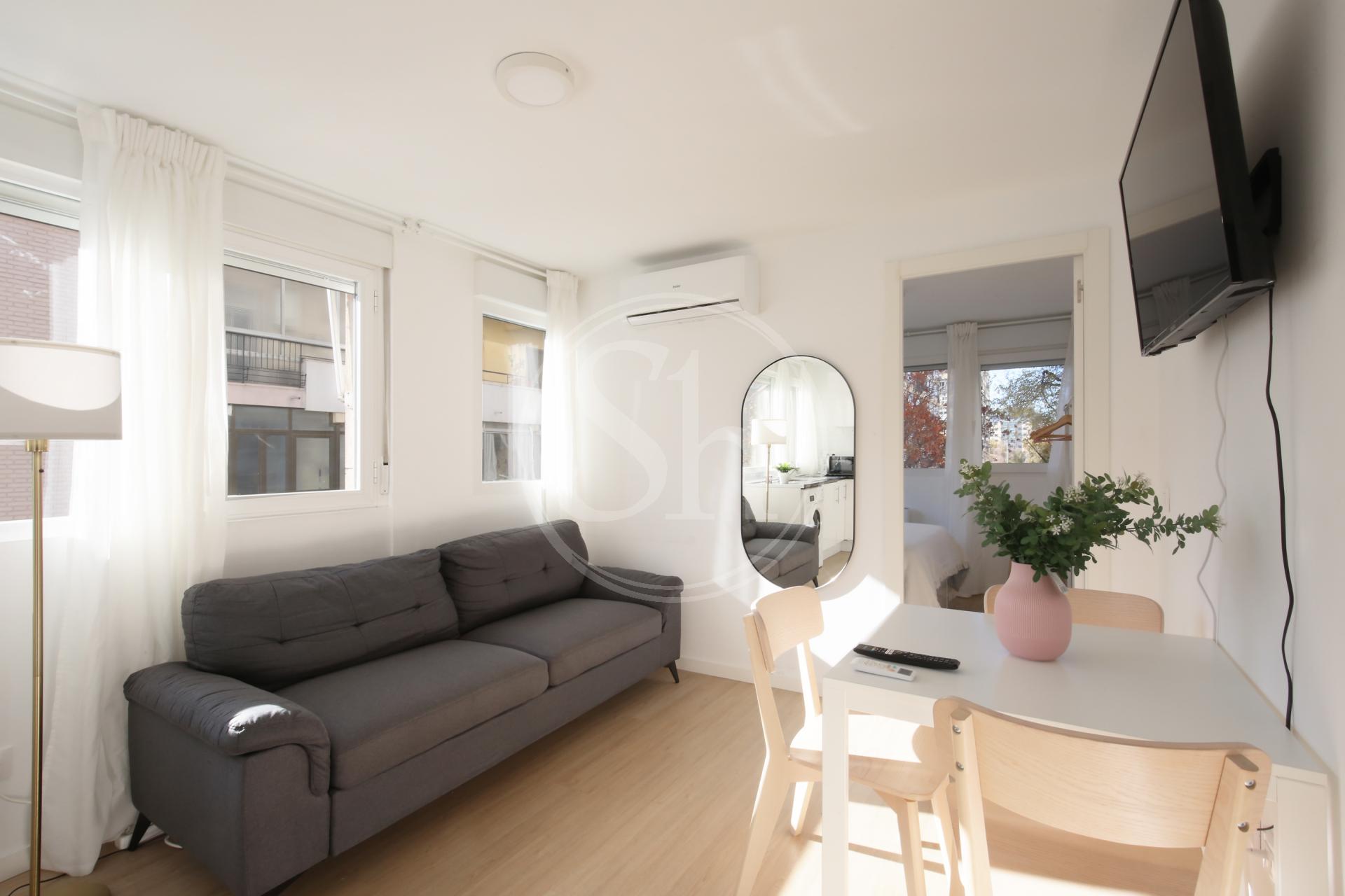 Totalmente amueblado y equipado, cuenta con una cocina con electrodomésticos, abierta a la zona de estar y dormitorio separado independiente, además de aire acondicionado con bomba de calor, garantizando bienestar durante todo el año.